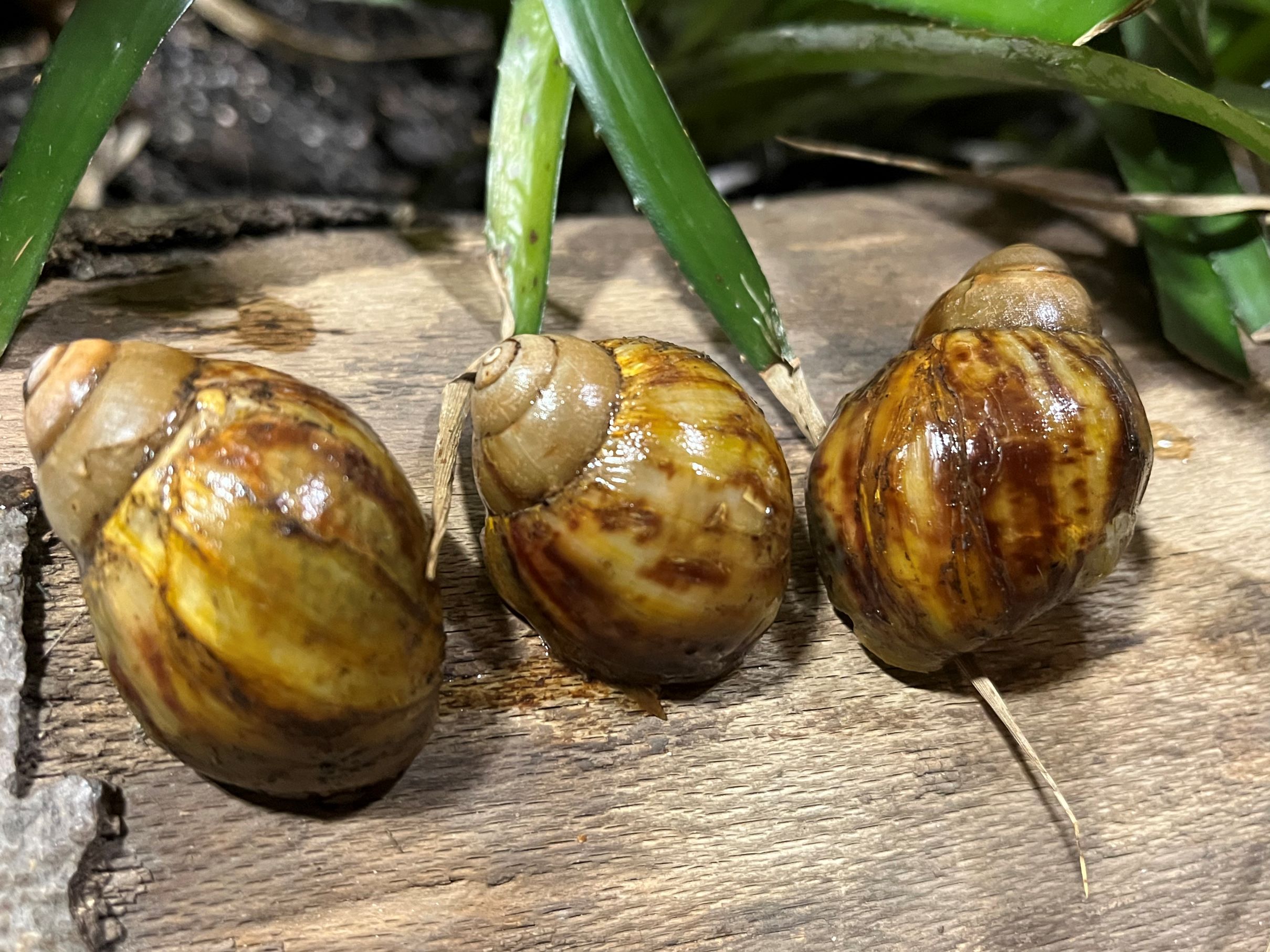 Celkem deset mláďat se vylíhlo u achatin vroubkovaných – forma Nigeria typ I (Archachatina marginata ovum). Ta mohou návštěvníci vidět v Pavilonu evoluce v jednom z terárií, která obývají spolu s několika dospělými jedinci. Jejich ulita může dosáhnout velikosti až 20 cm a řadí je mezi největší suchozemské plže. Achatiny jsou jako jiní plži hermafroditi, což znamená, že každý jedinec má vyvinuté samčí i samičí pohlavní orgány. Během páření si dva jedinci vymění tzv. spermatofory obsahující spermie, a tak nedojde k samooplození. Kulovitá vajíčka, která kladou do půdy, jsou velká jako skleněné kuličky. Po vylíhnutí mají malé achatiny okolo 3 cm a vyvinutou ulitu, která je zpočátku měkká a křehká. Ve své domovině jsou vyhledávanou pochoutkou a důležitým zdrojem bílkovin, vajíčka jsou pojídána jako kaviár. Jejich ulity slouží jako nádoby a k výrobě šperků, sliz k přípravě kosmetiky a léčiv.