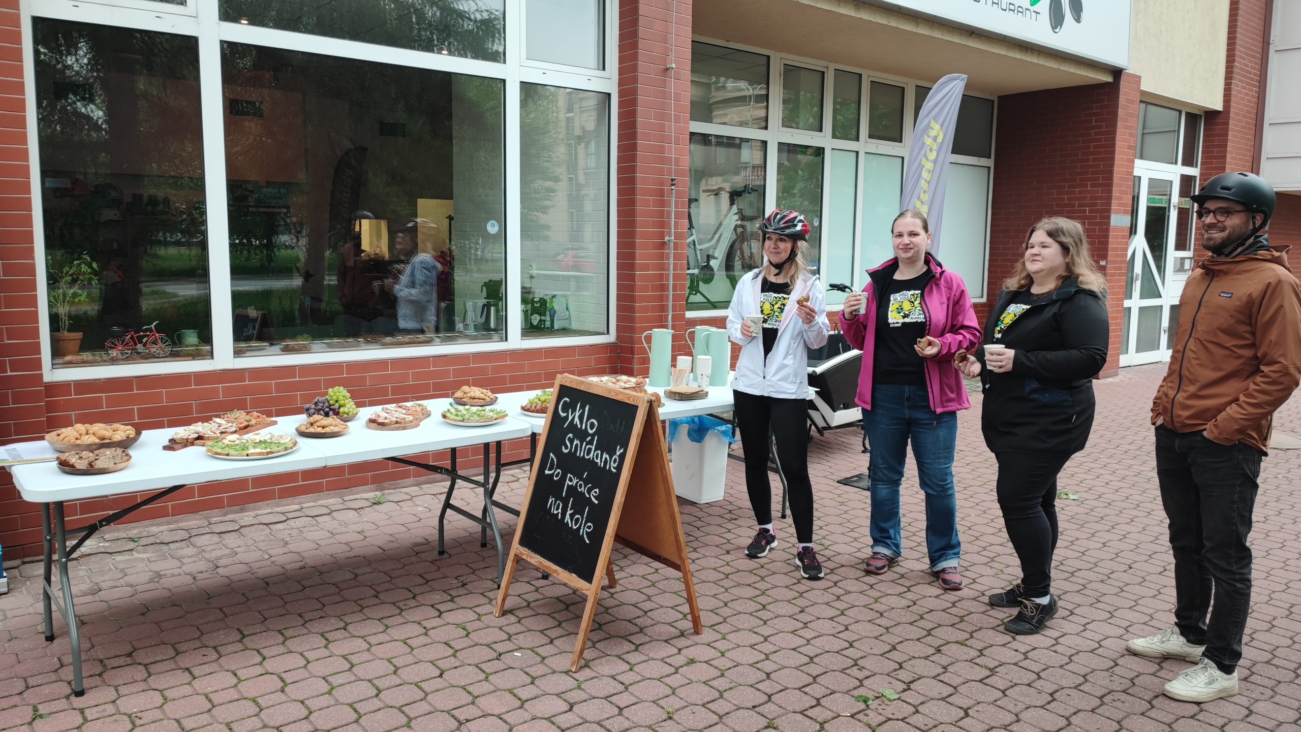 V úterý 6. května se konala skvělá akce na triko v místě prodejny Cargo Bike Daddy. Tady v rámci výzvy Do práce na kole poprvé pohostili účastníky kávou, čajem a čerstvě upečenými domácími dobrotami – bábovkou, rohlíčky a především výbornými kardamomovými pletenci. Nechyběla spousta slaných variací – focaccia, pomazánky, quiche a další. Těší nás, že si na akci našli cestu také ti z vás, kteří nepracují v centru. A soutěž o celodenní výpůjčku cargo kola zdarma vyhrál účastník, který dojíždí denně 20 km v jednom směru.