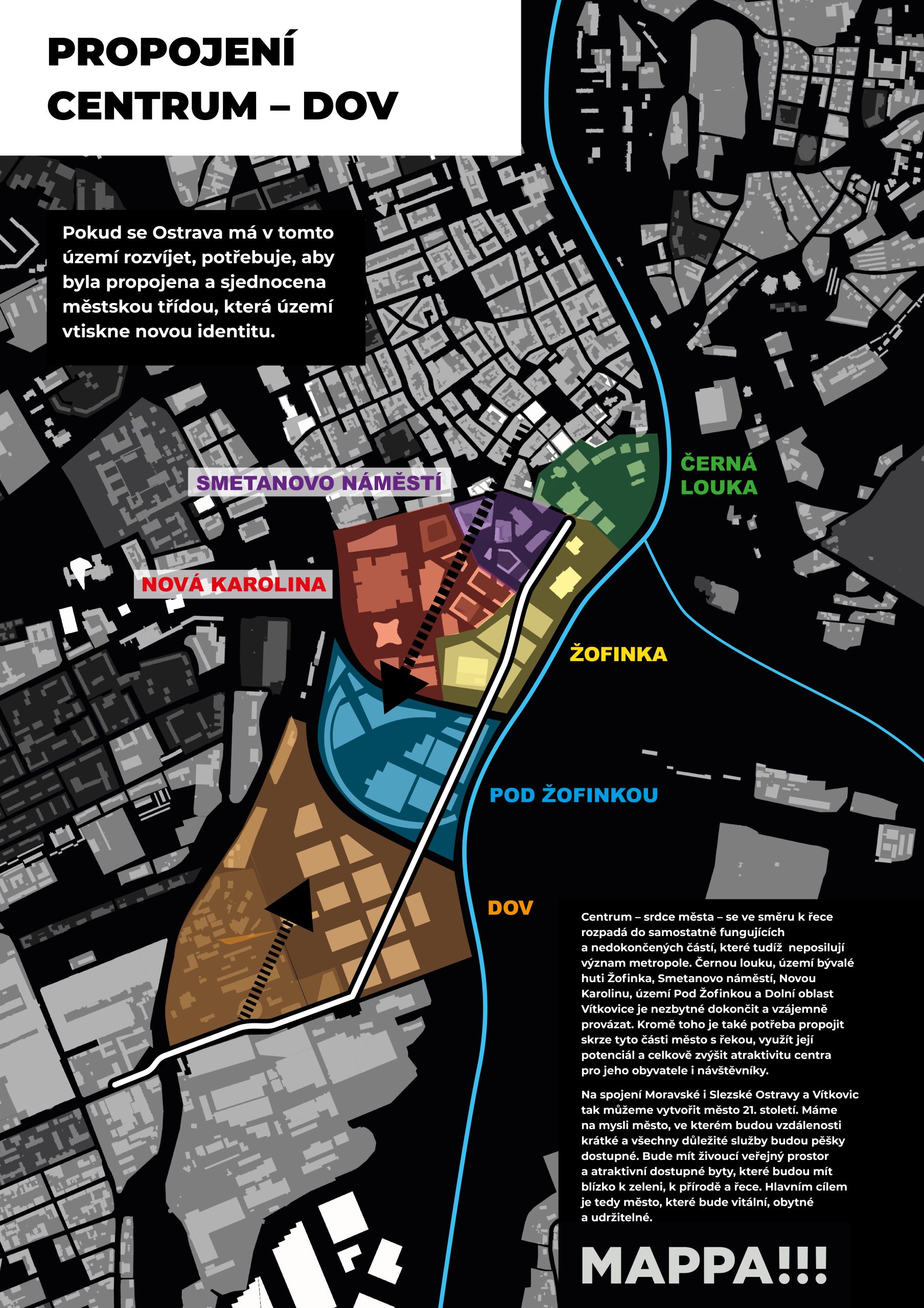 O tom, jak široké území koncept ovlivňuje, hovořil na debatě Ondřej Vysloužil, ředitel městského ateliéru MAPPA. Z pohledu celého města je klíčové propojení centra Moravské Ostravy s Dolní oblastí Vítkovice skrze lokality, které jsou v různém stavu realizace. Pokud se Ostrava má v těchto místech rozvíjet, potřebuje, aby byly propojeny a sjednoceny městskou třídou, která území pomyslně otevře a vtiskne mu novou identitu. V budoucnu by v území mohlo bydlet až 24 000 lidí.