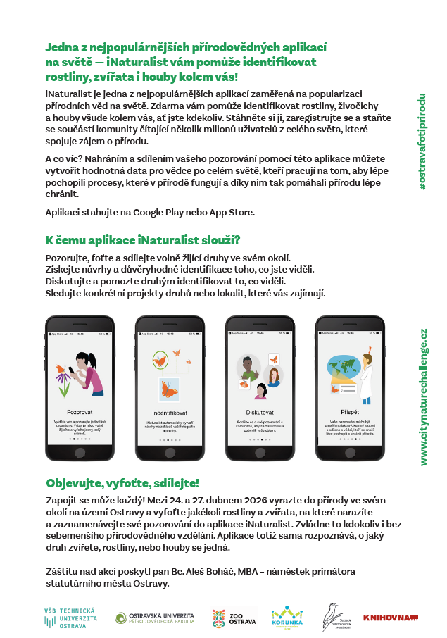 Statutární město Ostrava se v letošním roce rozhodlo již potřetí zúčastnit mezinárodního soutěžního projektu City Nature Challenge 2026, který probíhá napříč všemi kontinenty planety tentokrát ve dnech 24. až 27.4.2026.