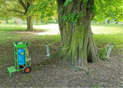 - Pracovnice odborné firmy provádí mikro-injektáž proti klíněnce jirovcové
