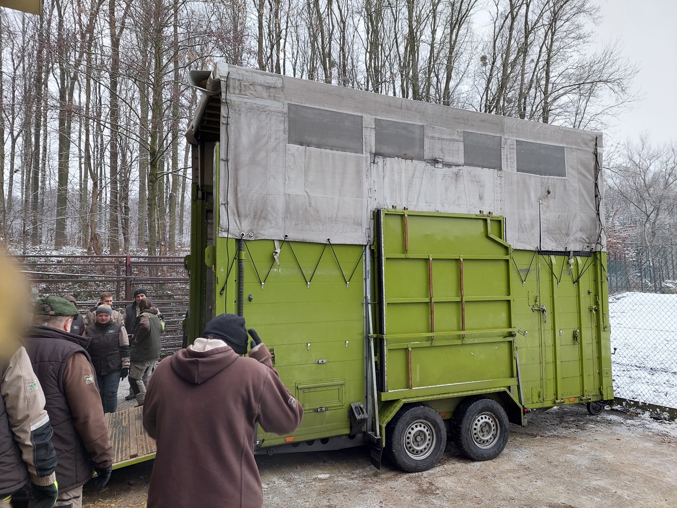 „Po otevření přívěsu samec zcela bez problémů vyšel přímo do připraveného vnitřního boxu. Samice byly v tu dobu ve vedlejším prostoru. Zvířata měla od začátku možnost na sebe vidět a kontaktovat se a v podstatě hned po příjezdu o sebe jevila zájem. Proto jsme už dnes začali se spojováním, zatím ale jen na krátkou dobu,“ popisuje inspektor chovu Ivo Firla. Po zbytek dne zůstane samec oddělen v části, kde jej lidé nemohou vidět celého, ale samec je zvídavý a oknem nahlíží do expozičního prostoru se samicemi, takže trpěliví návštěvníci mohou nového obyvatele zahlédnout.