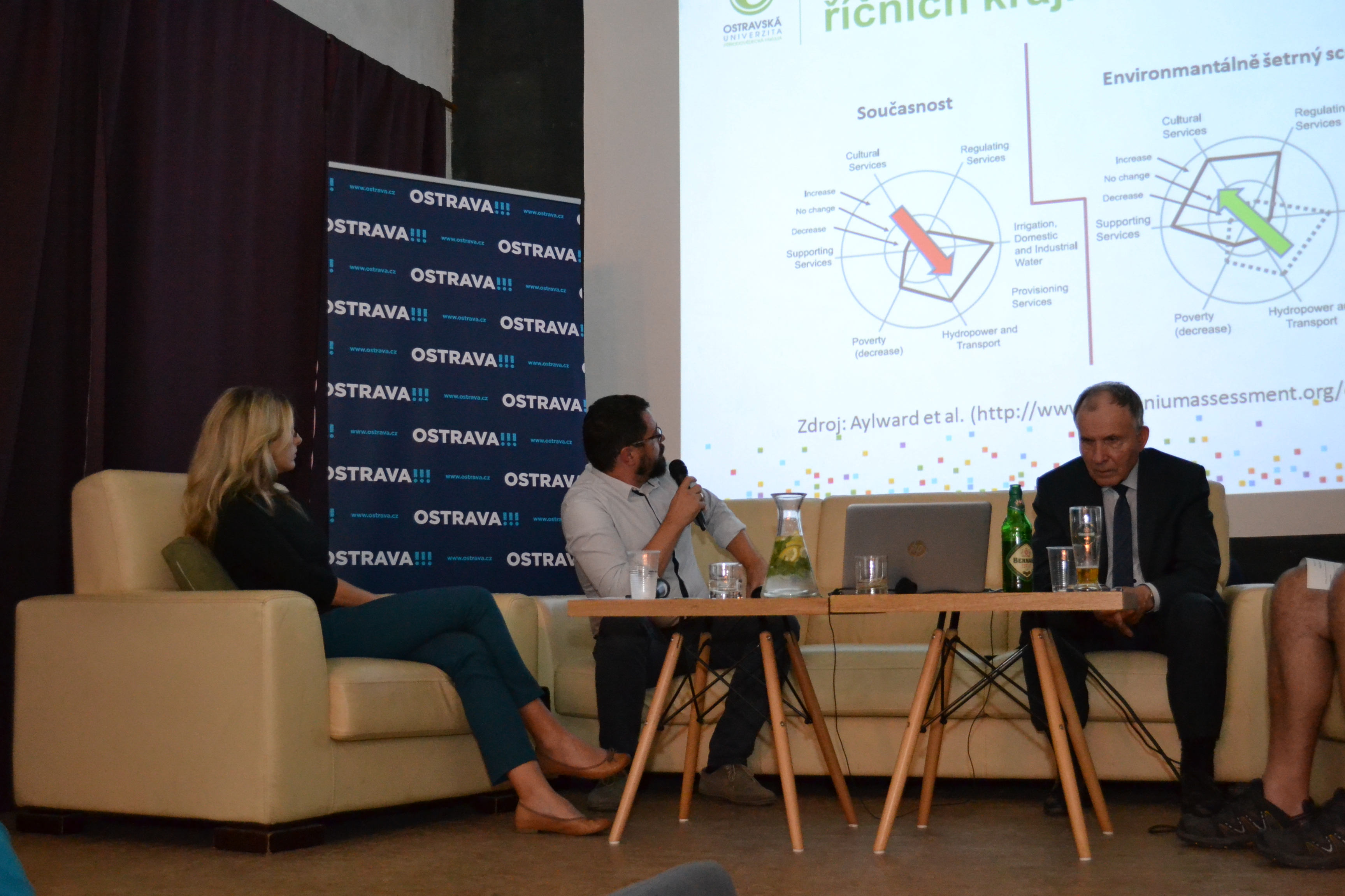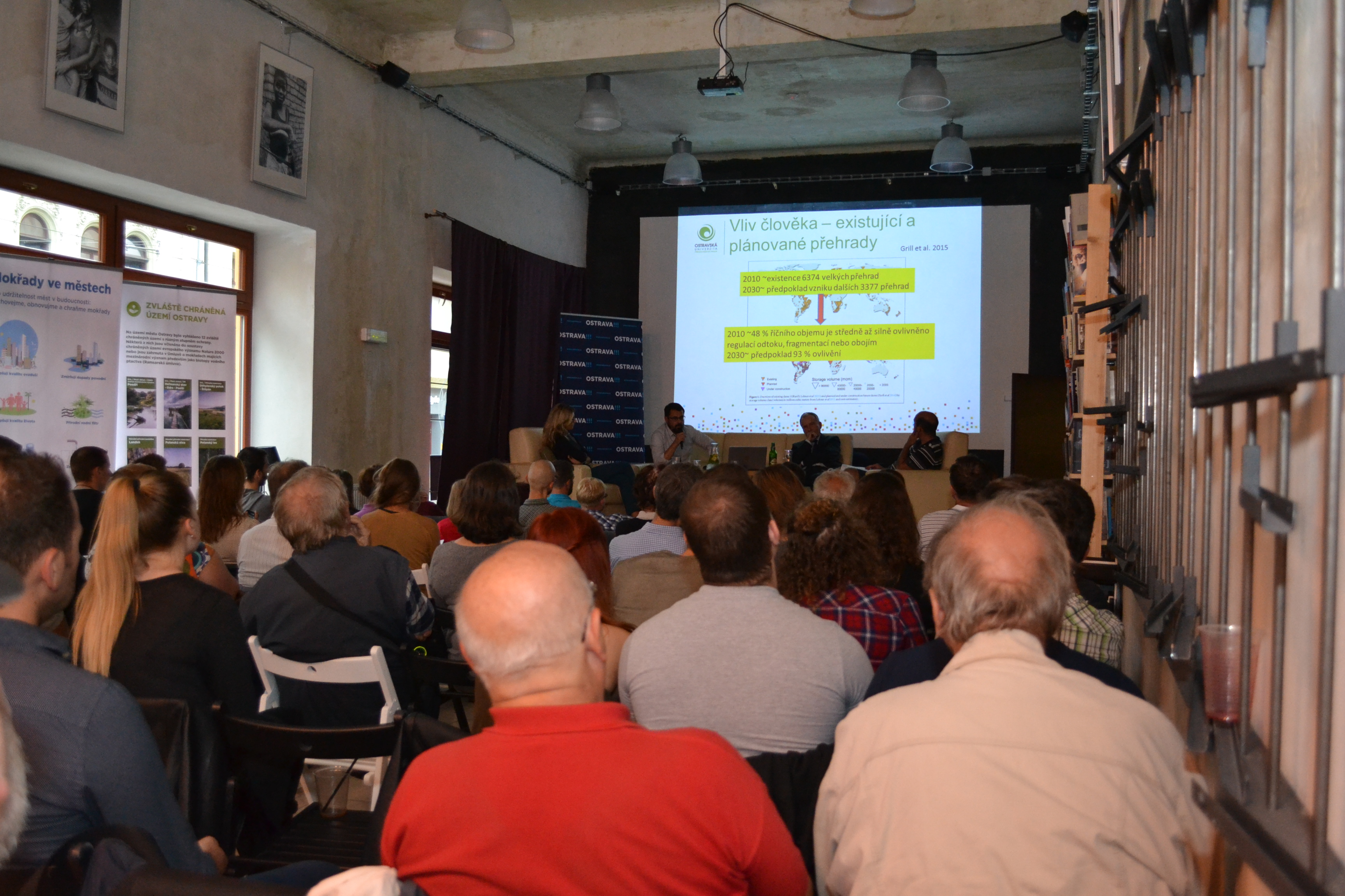 S velkým zájmem veřejnosti se setkala beseda „Voda: živel potřebný i nevyzpytatelný“, která se konala v Centru Pant. V pořadí již třetí beseda z cyklu Večery s vědci byla tentokrát zaměřená na vodu a klimatické změny. O tématu s veřejností diskutovali profesor Miroslav Kyncl (VŠB-TUO), docent Jan Hradecký (OU) a resortní náměstkyně Kateřina Šebestová.