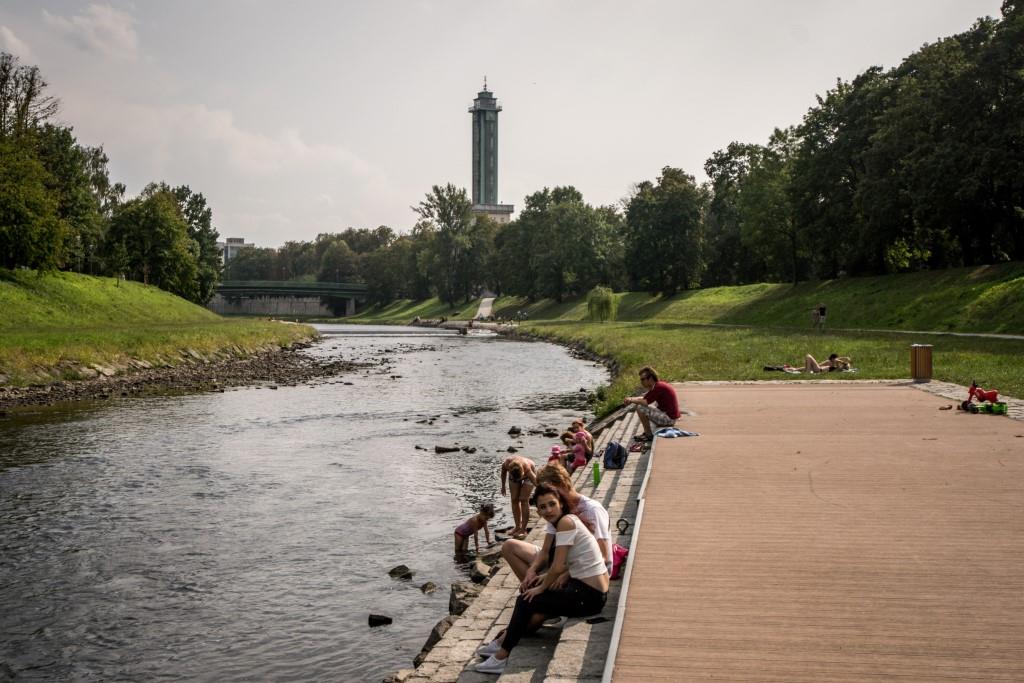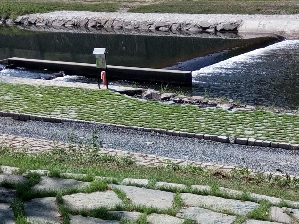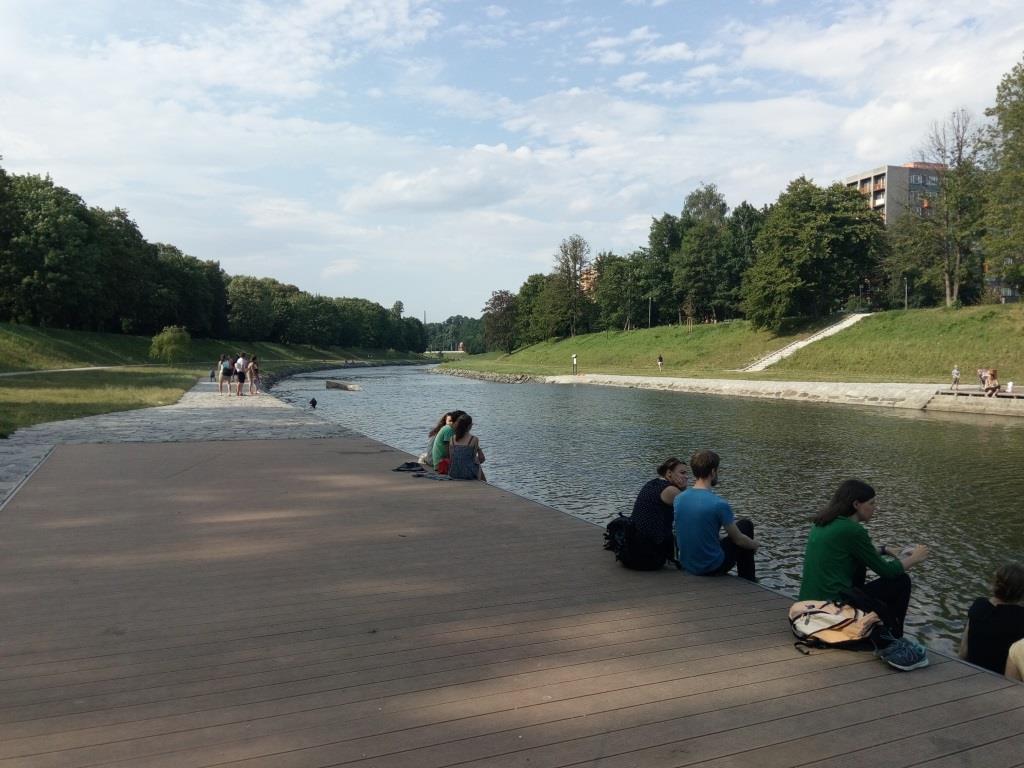 Břehy řeky byly upraveny pro pohyb a rekreaci občanů kamennou dlažbou a dřevěnými platy.
