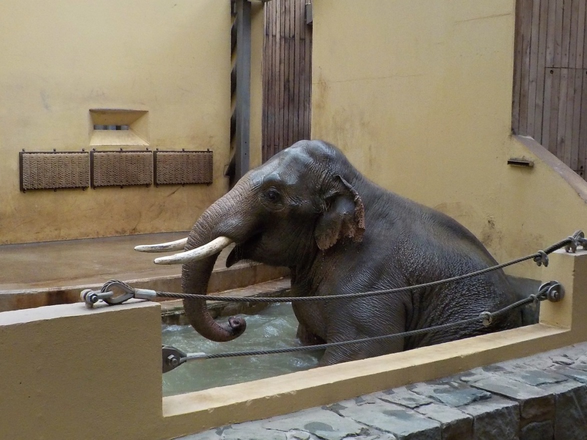 - Sloní samec v bazénu (Foto: O. Matěj)