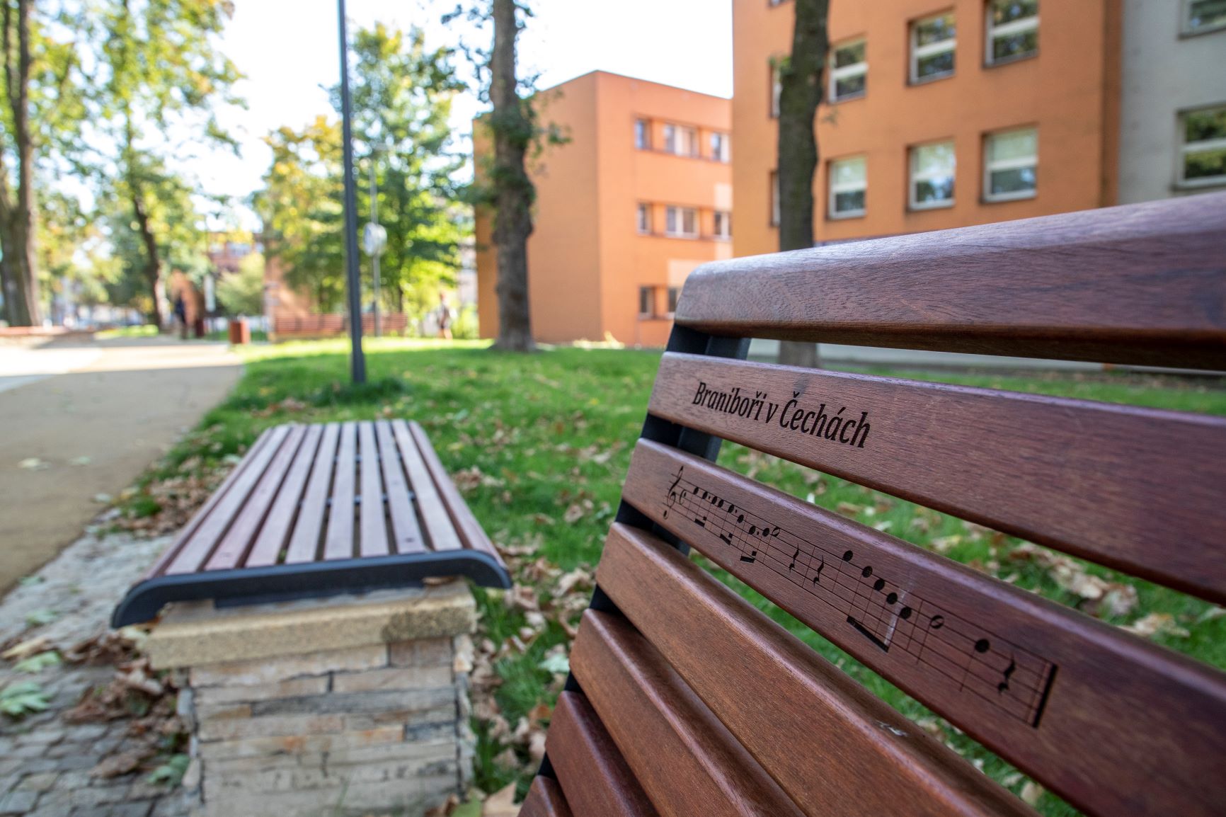 Názvy symfonických básní Bedřicha Smetany z cyklu Má vlast byly vytesány do kamenných desek ve zpevněné ploše centrální části, v dřevěných opěradlech laviček byly vypáleny takty z Braniborů, Čertovy stěny, Dalibora, Dvou vdov, Hubičky, Libuše, Prodané nevěsty i Tajemství.