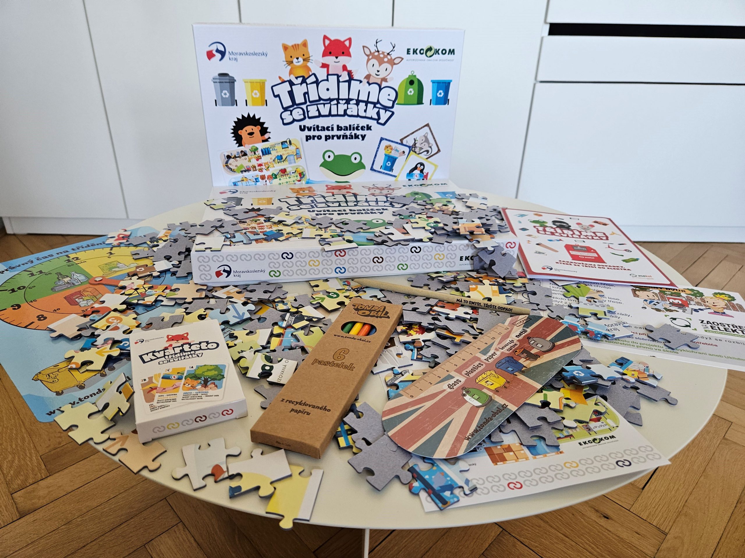 Pomoci jim k tomu mají edukační balíčky, které každý ostravský prvňáček obdrží ve své škole. V balíčku „Třídíme se zvířátky“ mají děti nejen praktické předměty do školy, jako je rozvrh hodin, papírové hodiny, pastelky z recyklovaného papíru, ale také hry o třídění odpadu, například kvarteto, hlavolamy, omalovánky a puzzle, které ukazuje, co se s vytříděným odpadem dále děje.