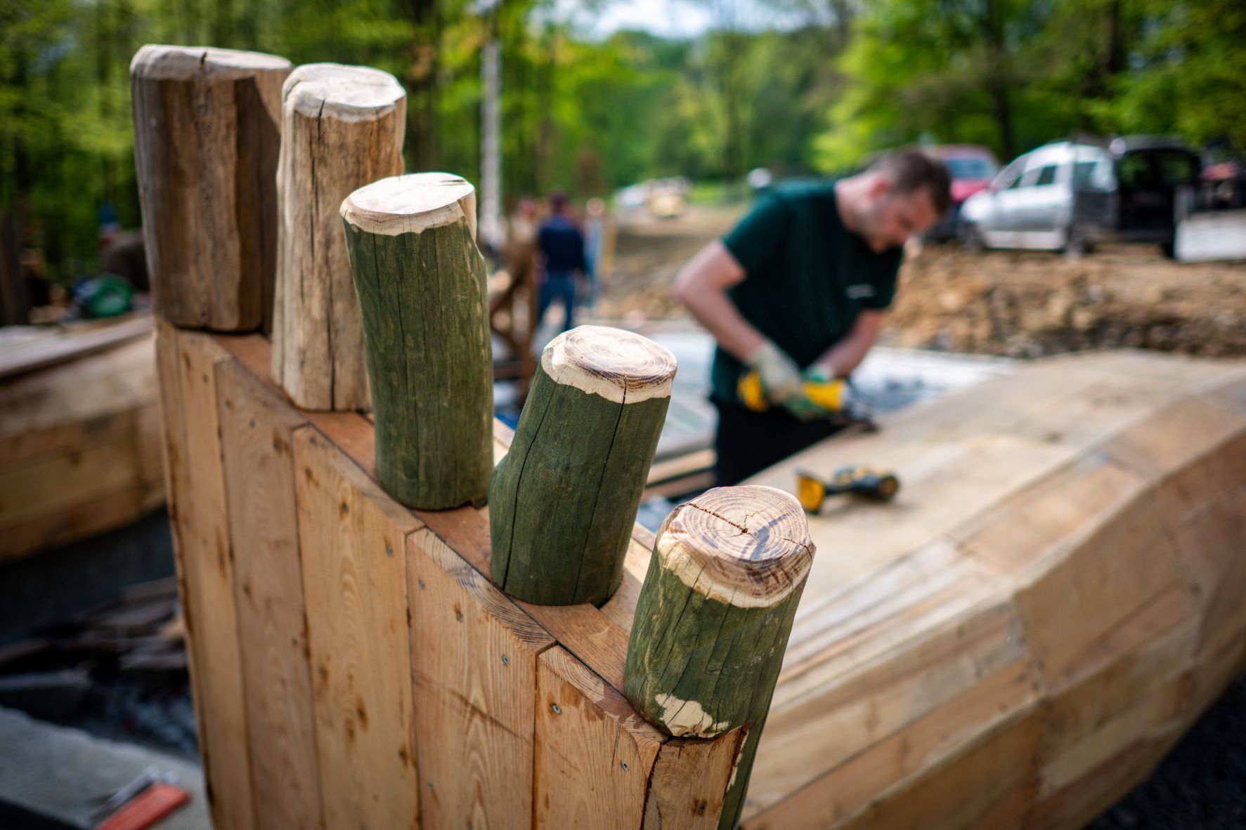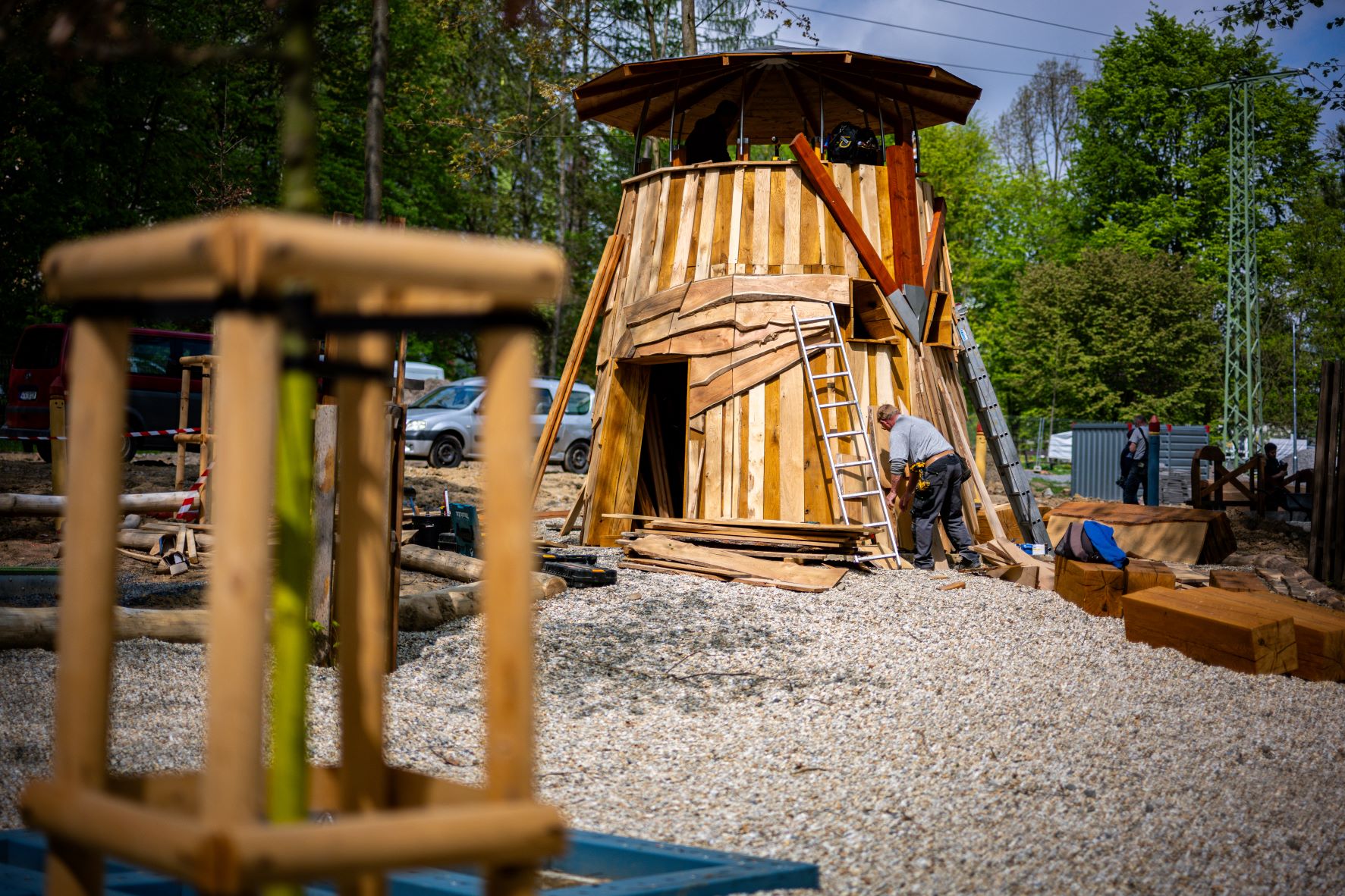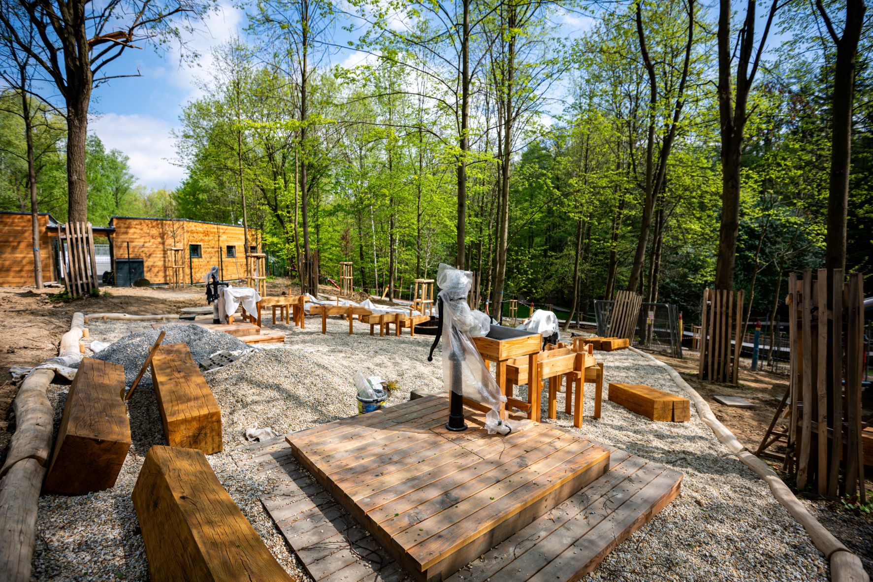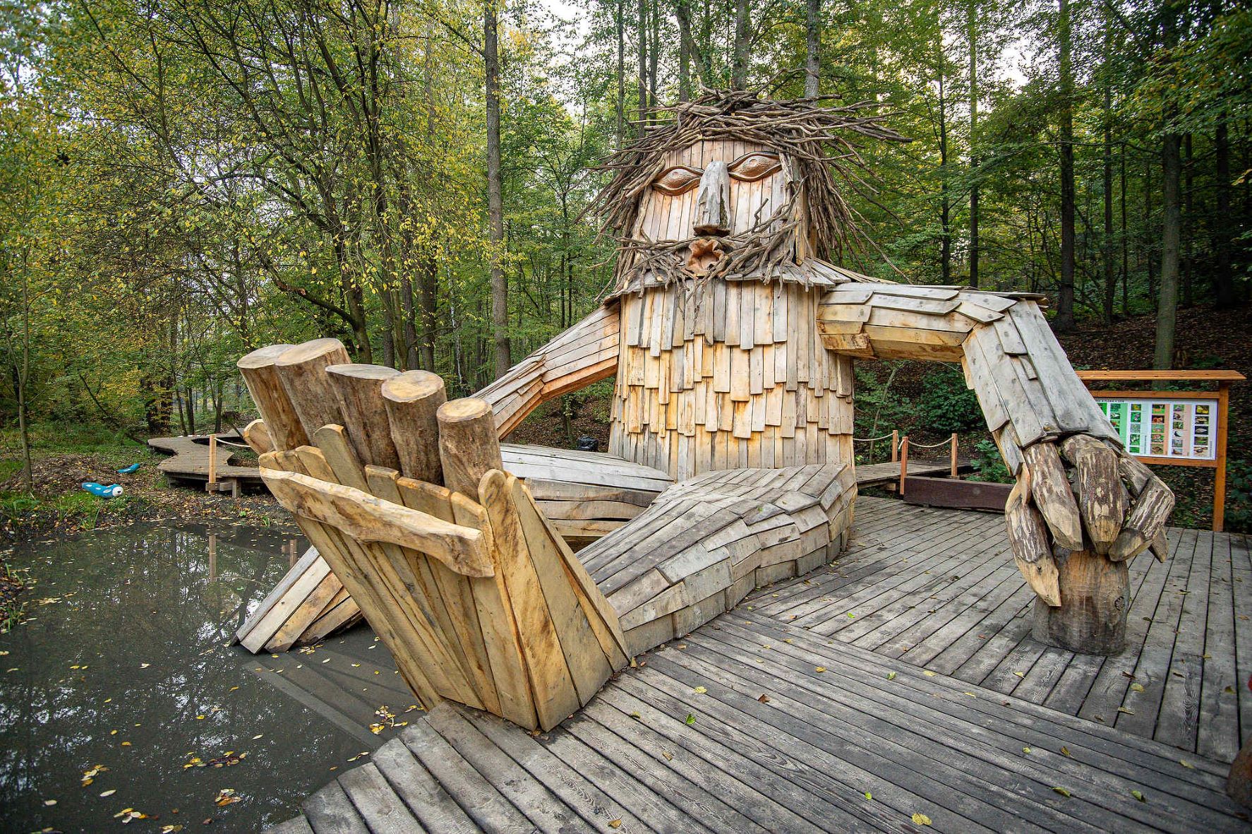V blízkosti obryně je na louce umístěn i kruhový labyrint. Prostor obohatí také další artové prvky – okřídlená stonožka, dětská prolézačka v podobě stromu a housenky. Dětské hřiště bude doplněno o lavičky a odpadkové koše. K odpočinku poslouží také dřevěné sedací plato. Před započetím prací bylo zapotřebí provést proklestění náletových rostlin.