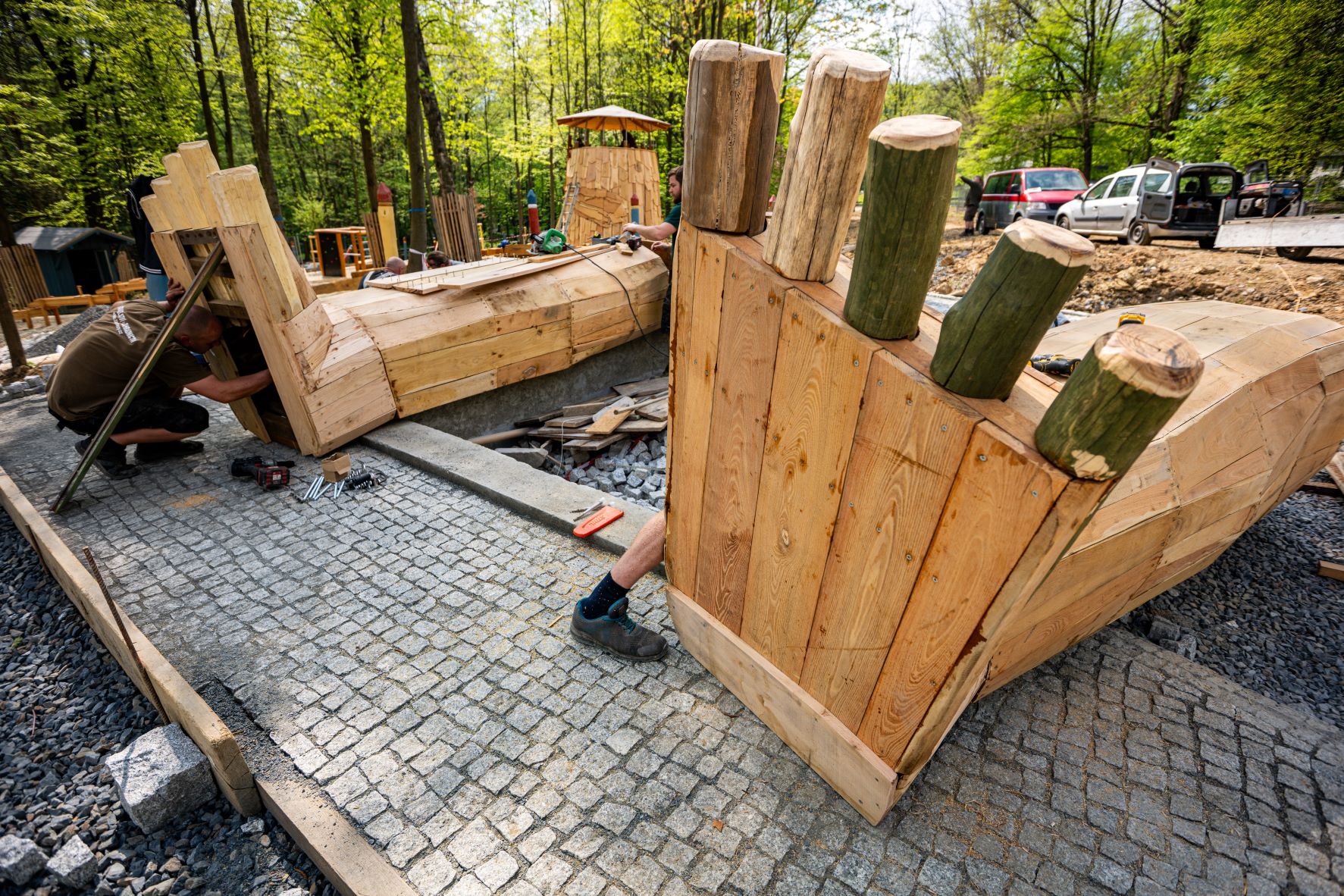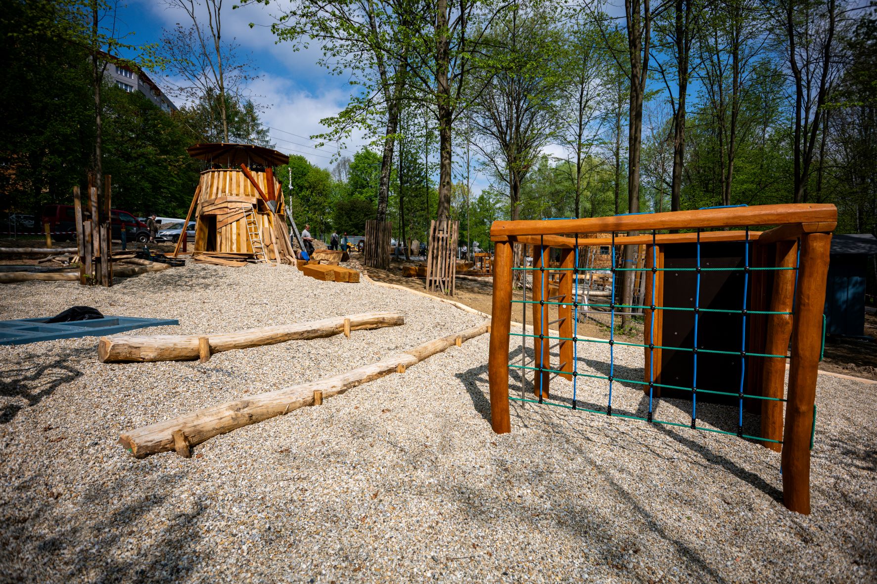 „Stejně jako první projekt Cesta vody i Park nad rybníkem obsahuje řadu artových prvků a celé spektrum hracích míst pro děti. Vybudováno bylo vodní dětské hřiště, tvořené soustavou vodních dřevěných korýtek i různých vodních atrakcí, včetně brouzdaliště z oblázků a dřevěných plošin. Zájemci budou moci využít i tři hrací místa, kde budou mít děti k dispozici dřevěné kostky nebo pěnové cihličky. Nejmenší jistě ocení i domeček „Sovu,“ jejíž horní část poslouží jako taková rozhledna a uvnitř jako kuchyňka ke hraní. A protože obr, situovaný v rámci Cesty vody, je dětmi velmi vyhledávaný, i aktuálně budovaný park nabídne dětem obdobný artový prvek v podobě obryně, dokonce doplněné o pískoviště,“ konstatuje Břetislav Riger, náměstek primátora pro investice.
