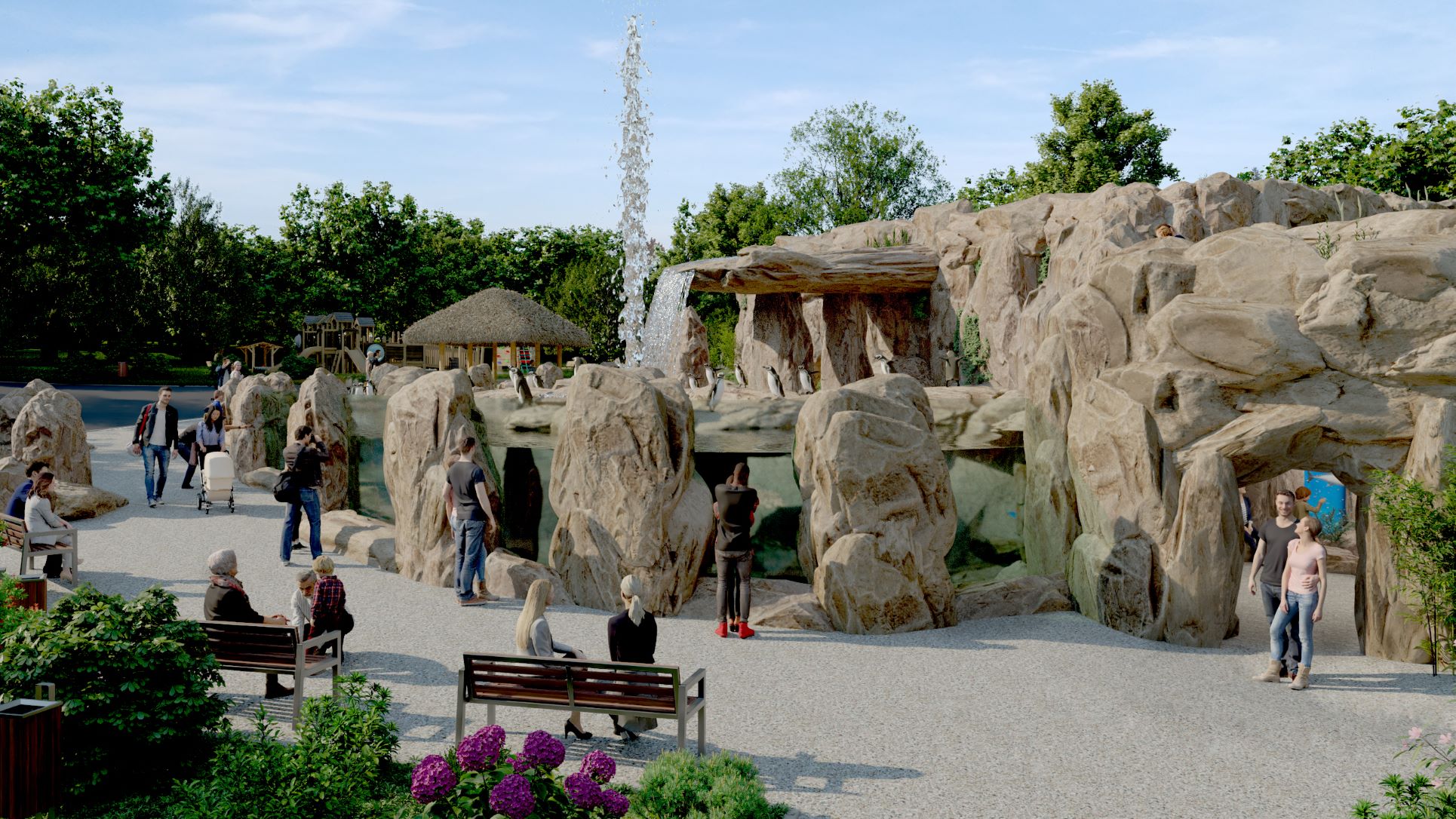 Návštěvníci budou v těsném kontaktu s tučňáky, odděleni pouze zábradlím a prosklenými průhledy. V bazénu bude umístěn poloostrov s vyvěrajícím vodním gejzírem. Expozice bude také zahrnovat interaktivní výukovou část, v které budou představeny příčiny ohrožení tohoto druhu.