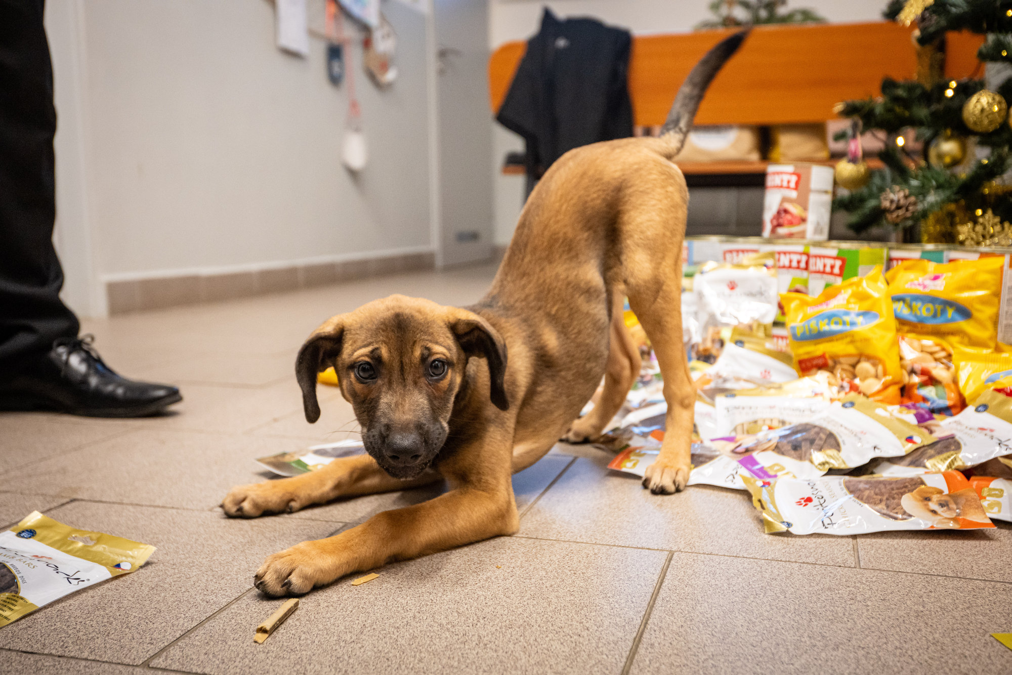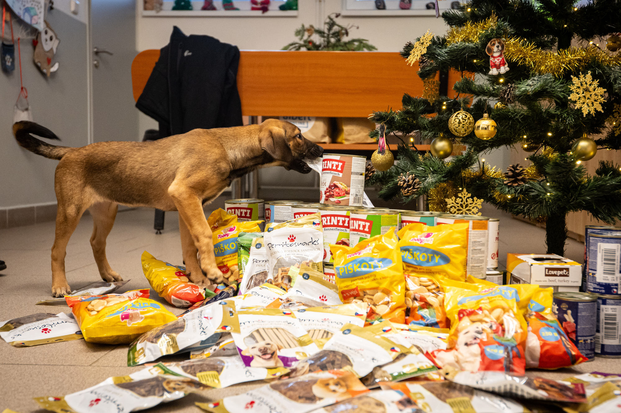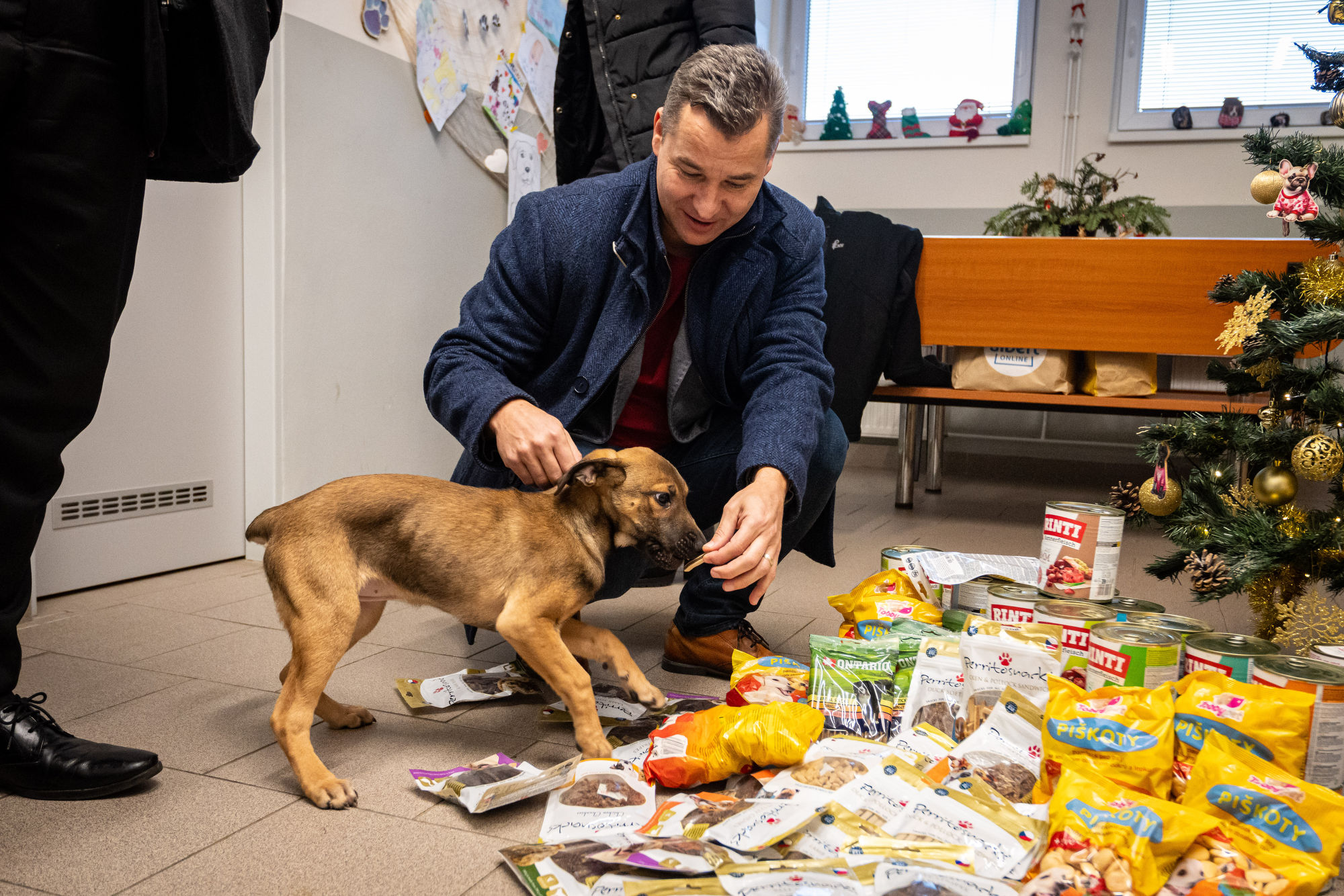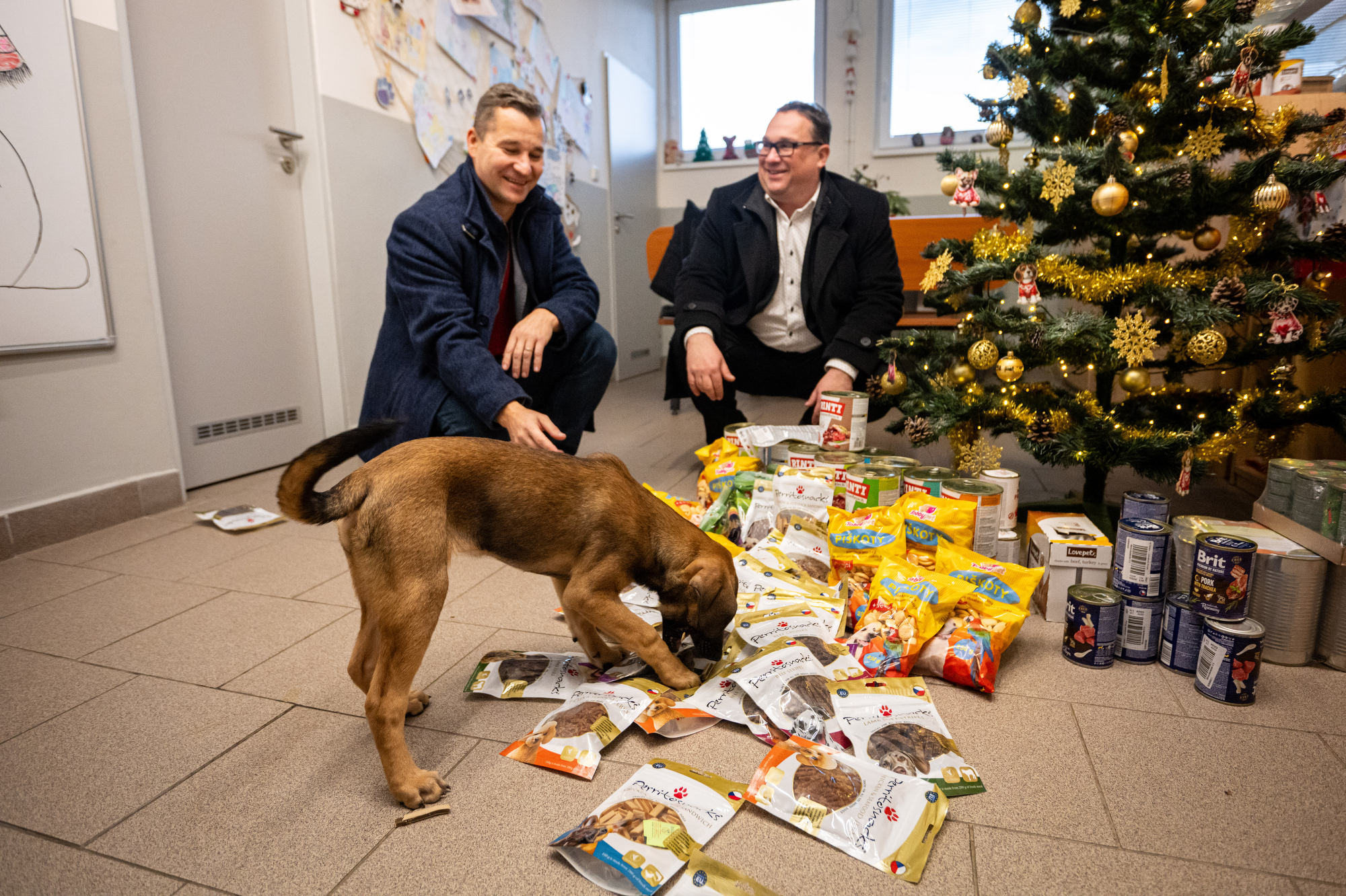 Bohatou nadílku „útulkáčkům“ pod vánoční strom přinesli primátor Jan Dohnal s náměstkem Alšem Boháčem. Foto: Lukáš Kaboň