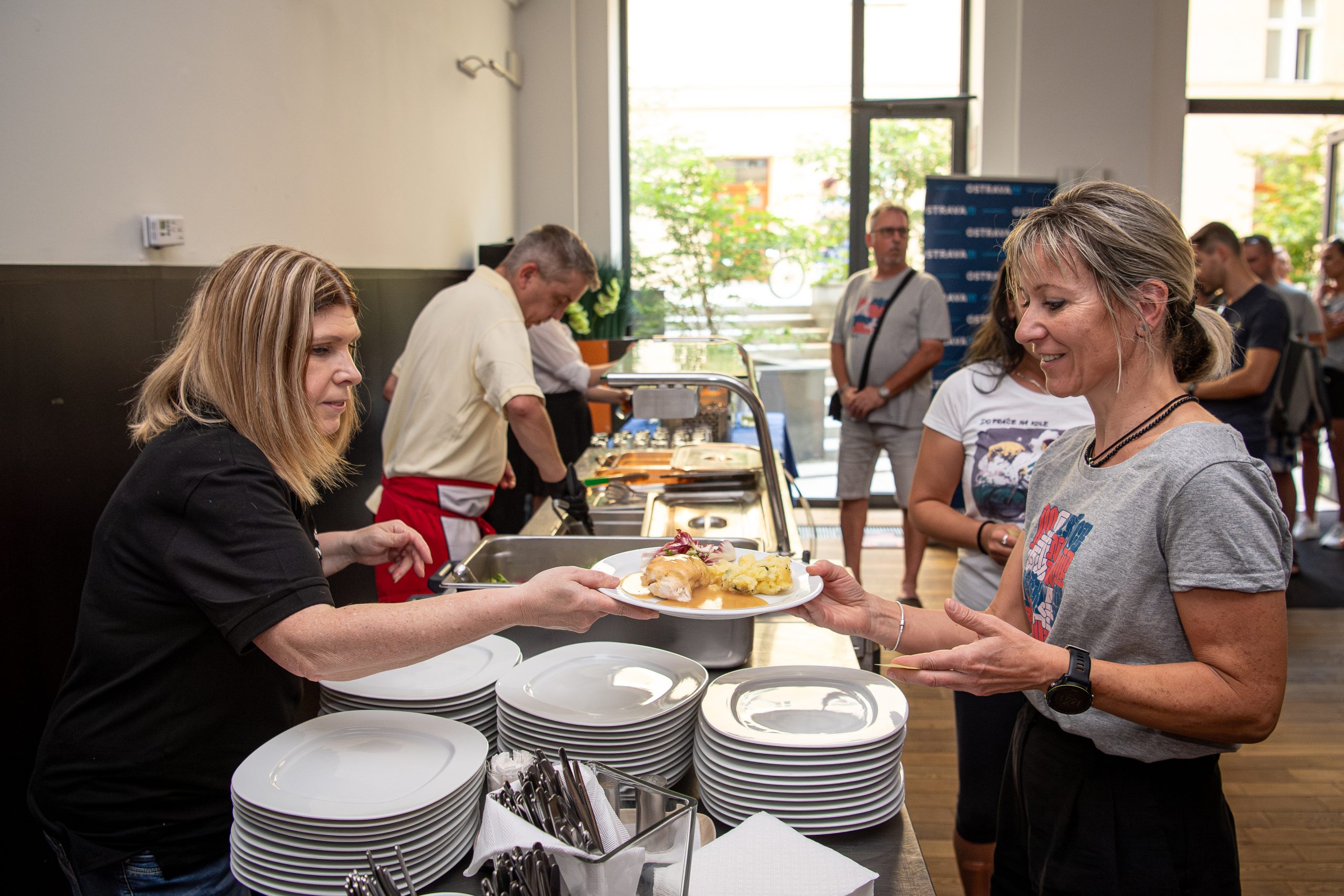 - Zázemí u registračního stolečku.