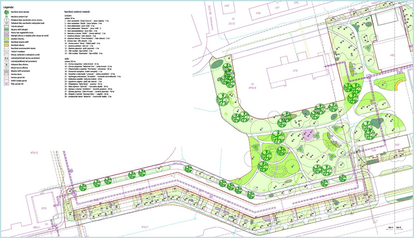 Předmětem projektu, jehož cílem je obnova funkčního stavu stávajících ploch veřejně přístupné sídelní zeleně ve vnitrobloku a u vstupů do domů v panelovém sídlišti (ul. Dr. Martínka), je ošetření stávajících dřevin, nové dosadby, nové řešení zpevněných ploch a komunikací, terénní modelace, doplnění venkovního mobiliáře.